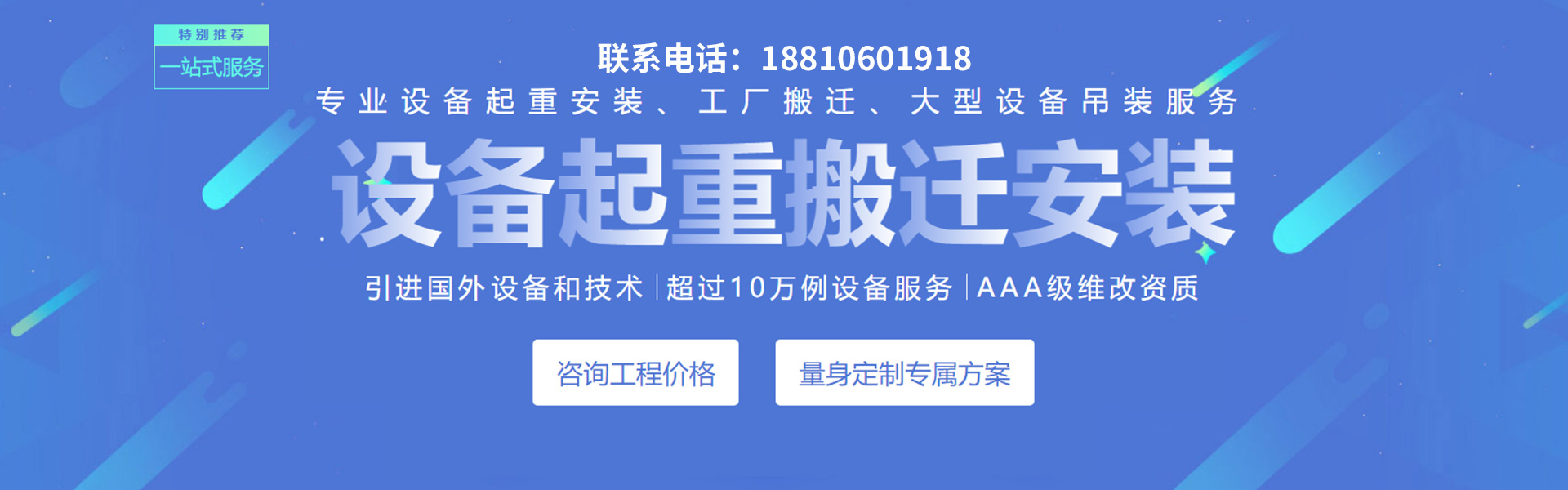 北京久泰起重工程技術有限公司;成立于2006年是一家現代化起重吊裝搬運安裝公司,擅長于工廠設備搬遷、精密儀器無塵車間機械設備移位、起重、吊裝、運輸、搬運、就位、安裝等,公司穩健服務于北京、天津、河北、遼寧等地區,業務輻射全國。 久泰起重主營業務為設備起重、托運吊裝、精密數控設備搬運安裝、工...